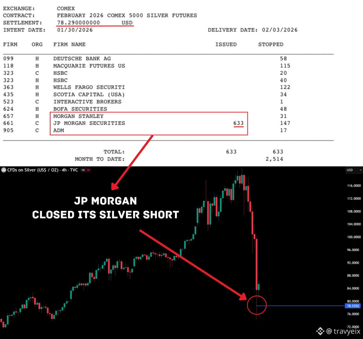 يشير تقرير صادر عن بورصة كومكس (COMEX) إلى أن البنك أغلق مركز بيعه المكشوف للفضة عند حوالي 78 دولارًا.