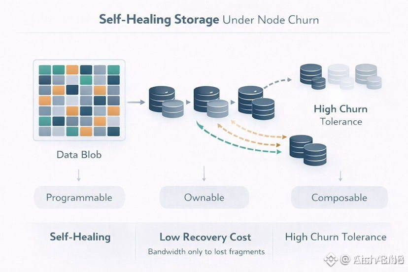 The tech under the hood is legitimately clever. Red Stuff uses fancy erasure coding to split files into slivers with smart redundancy—not full replication (which is insanely expensive and wasteful), but enough that the network can lose a bunch of nodes and still recover perfectly. And the killer part: self-healing only needs bandwidth for the lost chunks, not re-uploading the whole damn file. That’s a huge efficiency win in high-churn decentralized networks where nodes come and go constantly. No more “oh great, half the network left, now we’re rebuilding everything from scratch.”