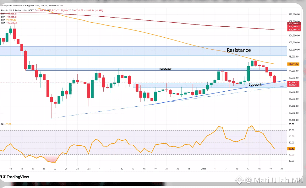 - Key levels: Support tested around $87,000–$88,000 (recent lows), with deeper potential toward $80,000–$85,000 Fibonacci zones if selling accelerates. Resistance sits at $90,000–$94,000 (prior highs and broken trendline areas).