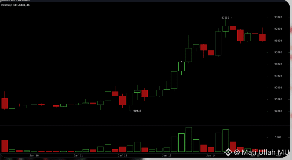 - Short-term trend (daily/weekly): BTC has been in a corrective/consolidation phase after earlier 2026 highs near $97,000–$98,000. Recent daily candles display rejection wicks at resistance (~$94,000–$95,000 zone), followed by lower closes, forming a series of lower highs. This has broken short-term ascending trendlines from December/early January lows.