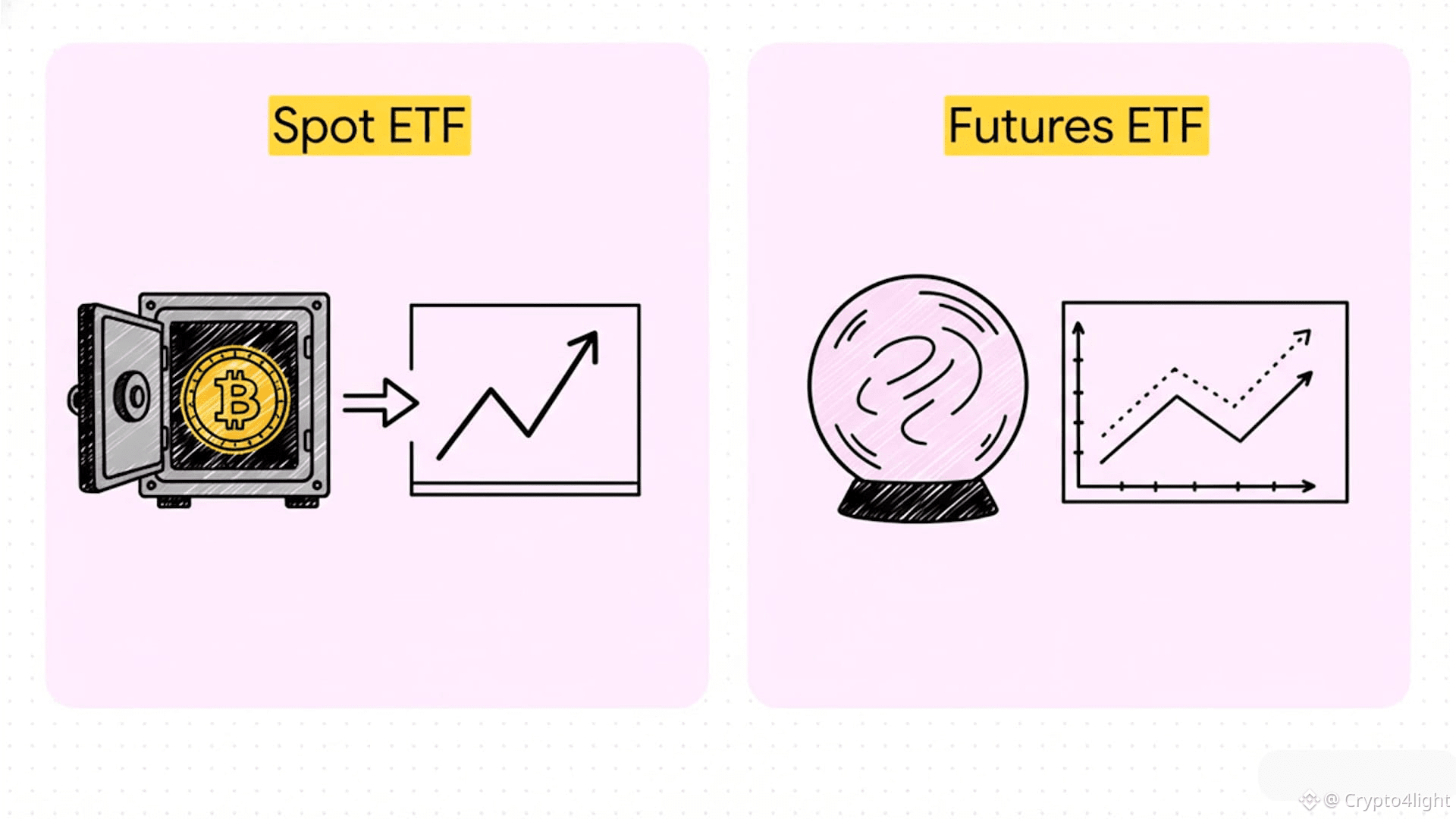 Spot crypto ETFs hold the underlying asset directly – for example, a spot Bitcoin ETF actually owns BTC in custody, and its share price reflects real‑time Bitcoin movements, minus fees.