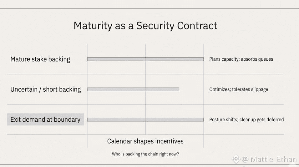 At the end of the day, operations teams always circle back to the real issue: Who's truly supporting the chain right now? That's where Dusk's maturity period shines. It's a smart buffe short enough to let users plan exits without freaking out, but long enough to ensure the network's security isn't just borrowed from funds that could vanish halfway through. Plenty of other systems gloss over this, only to panic when everyone tries to unstake at once.