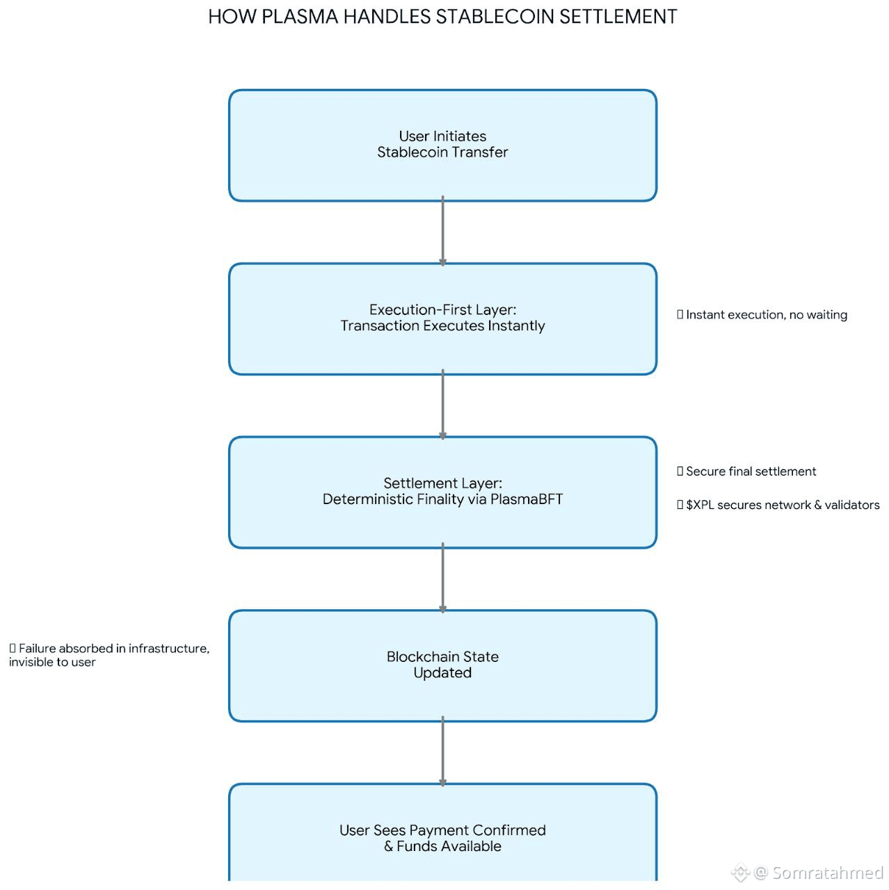 Instead of treating stablecoin transfers like generic transactions, Plasma treats them as settlement events that must feel final immediately. Its execution-first architecture allows USDT and other stablecoins to execute instantly, while settlement security happens in the background. The user experiences completion, not waiting. This sounds subtle, but for payments, it changes everything.