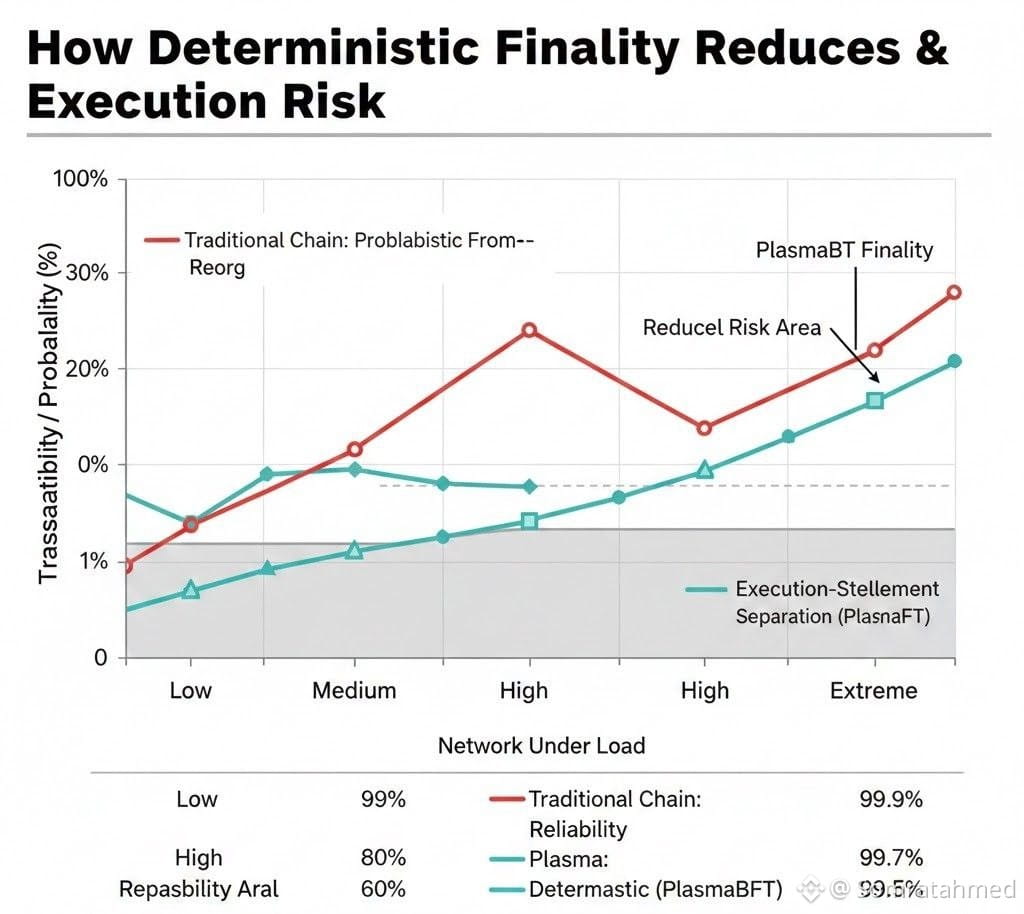 Plasma separates execution from settlement. Transactions run instantly on the execution layer, giving users and protocols real-time feedback. Settlement occurs securely in the background via PlasmaBFT, ensuring deterministic finality. For DeFi, this is revolutionary: lenders, traders, and liquidity providers no longer need huge capital buffers just to hedge against execution or reorg risk.