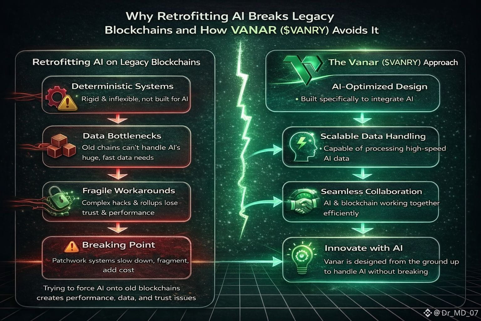From the builder’s side, retrofitting AI means juggling too many moving parts smart contracts, off-chain compute, storage, verification…it’s a mess. That complexity kills creativity. Vanar cuts a lot of that out by matching their tools to how modern apps actually get made. Developers can get on with building cool stuff, not wrestling the plumbing.