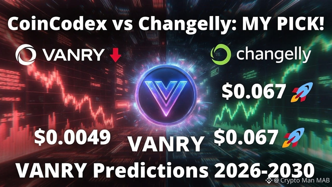 I have done the calculations and considered the principles of VANRY - such as its small market value (14-15M) and its developing ecosystem - and I would choose Changelly. Why? Their sanguine expectations are equivalent to those that I observe in under-appreciated projects in bear markets. In case Vanar hits partnerships or technology upgrades, it feels like they can hit that 2030 target of $0.067. CoinCodex is rather too pessimistic since crypto has a track record of unexpected rallies.