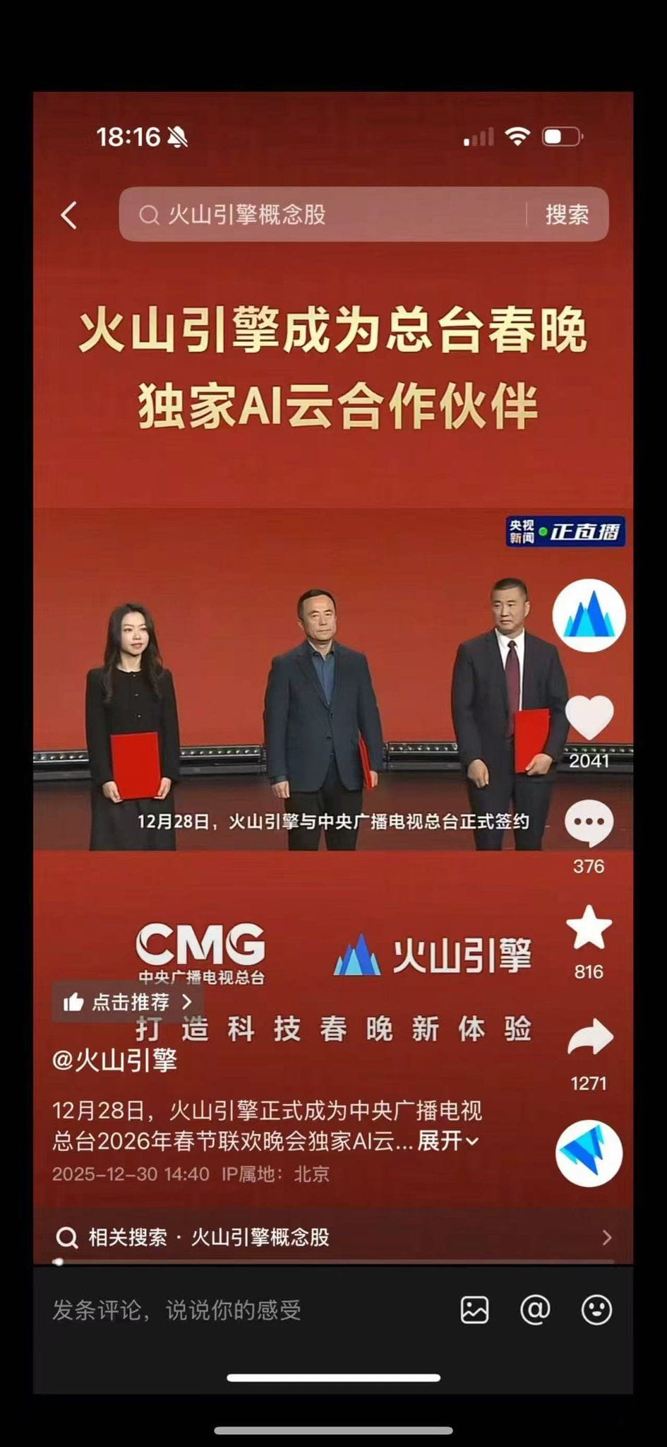 1、火山引擎:入驻春晚项目,到时曝光量大,