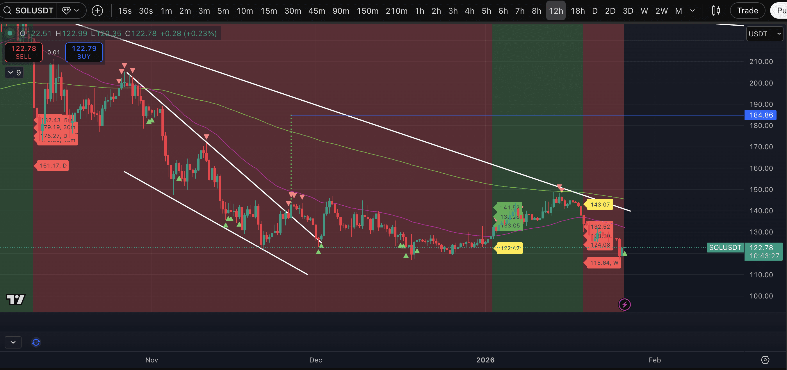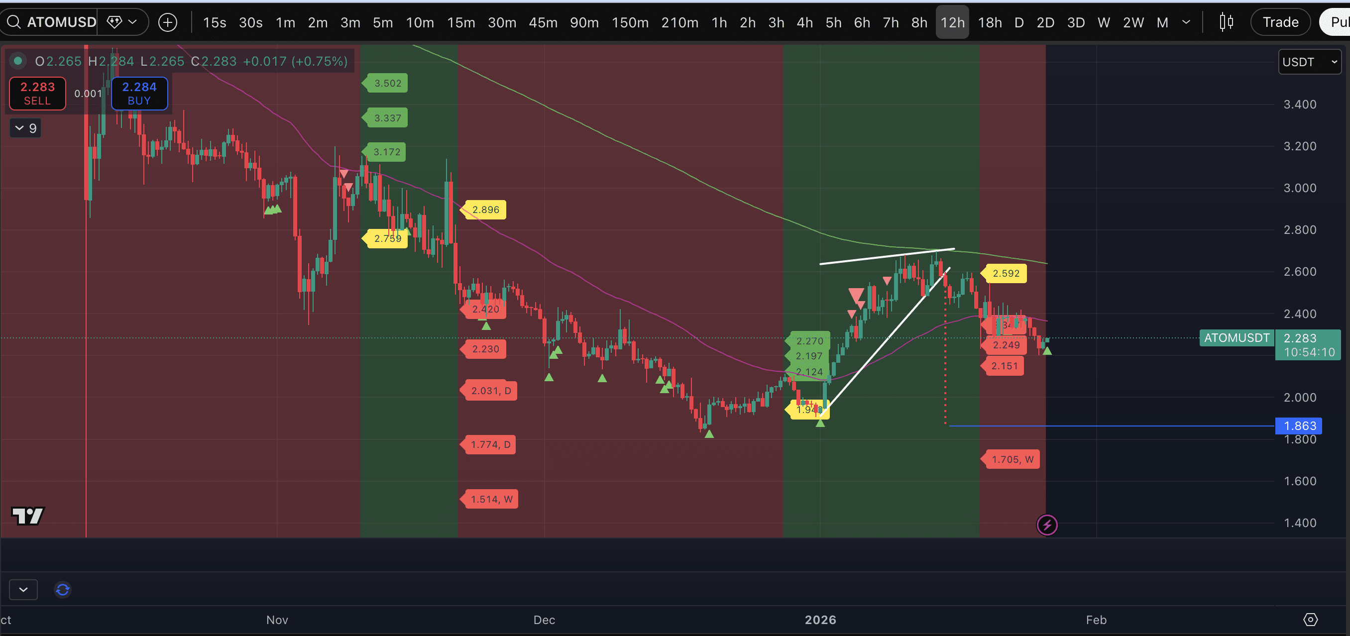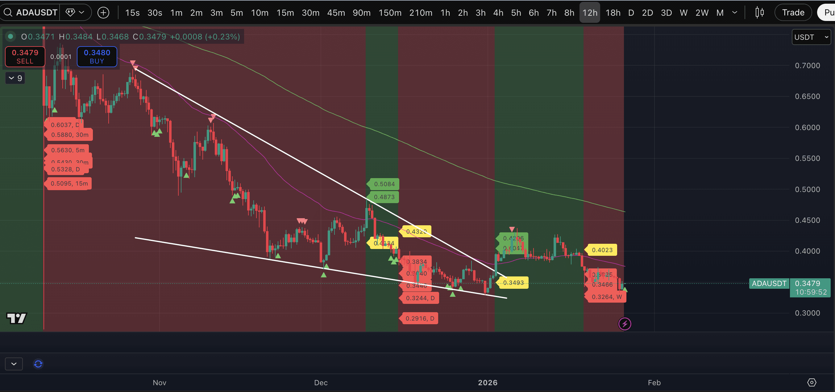 - Assets are in a stable downtrend on the 12-hour timeframe, and many of them have not yet fully reached their basic downtrend targets.