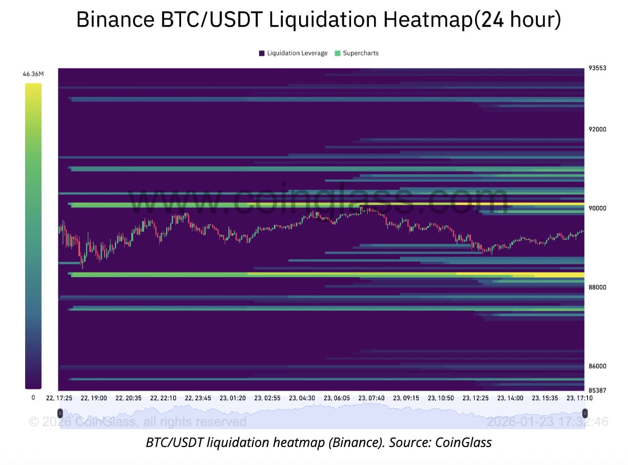 Bitcoin must reclaim the $91,000–$93,500 zone to restore upside momentum. Failure to do so leaves downside support clustered between $85,000 and $88,000.