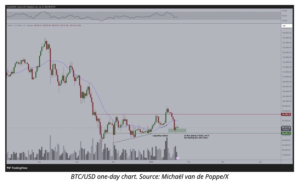 At the Wall Street open on Friday, Bitcoin remained locked in a narrow consolidation range after failing to reclaim the $90,000–$93,500 resistance zone.