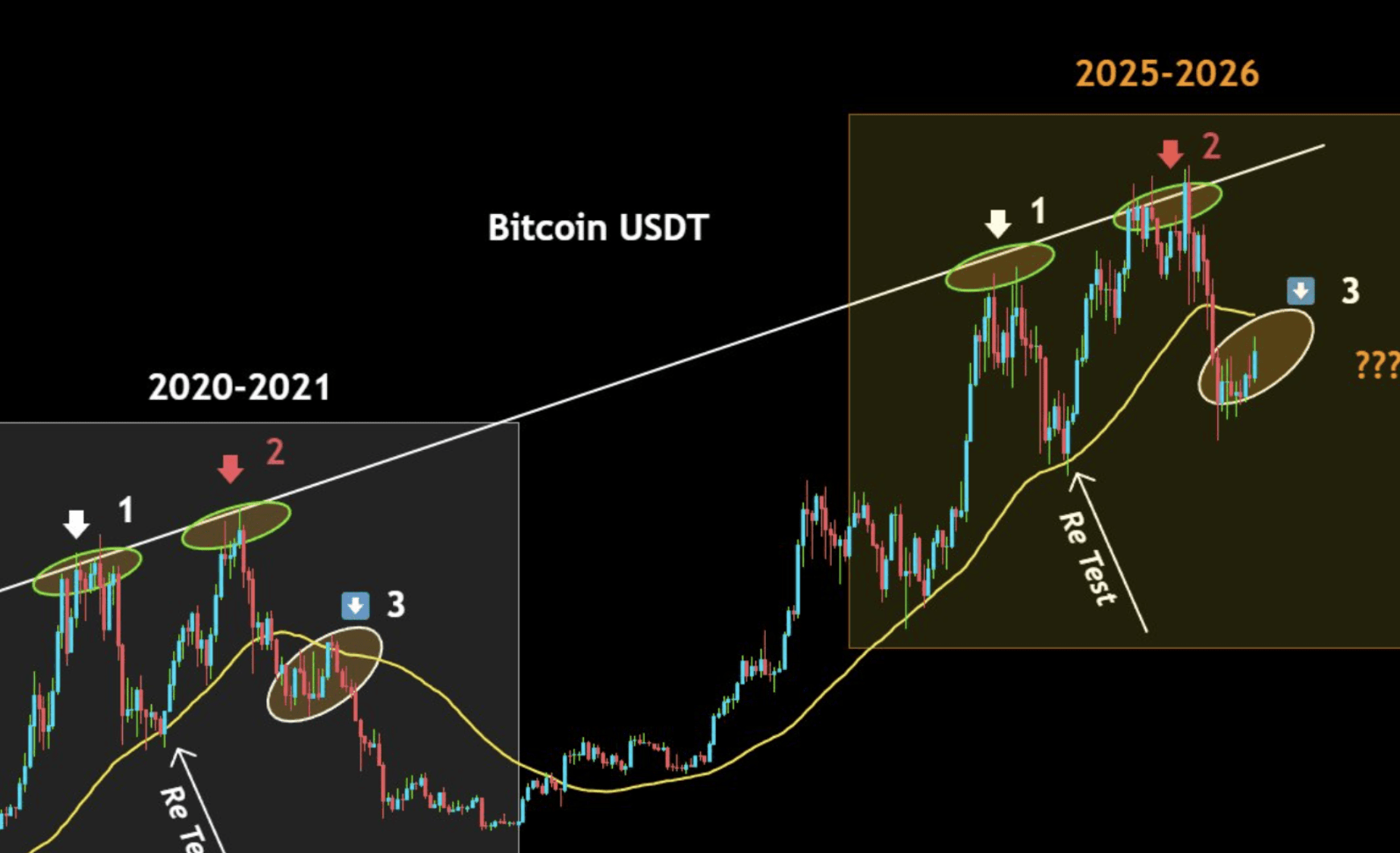 In the previous cycle, after reaching the highest all-time high, $BTC completed the structure by accumulating at lower price levels before continuing to expand the trend and move towards a new peak.