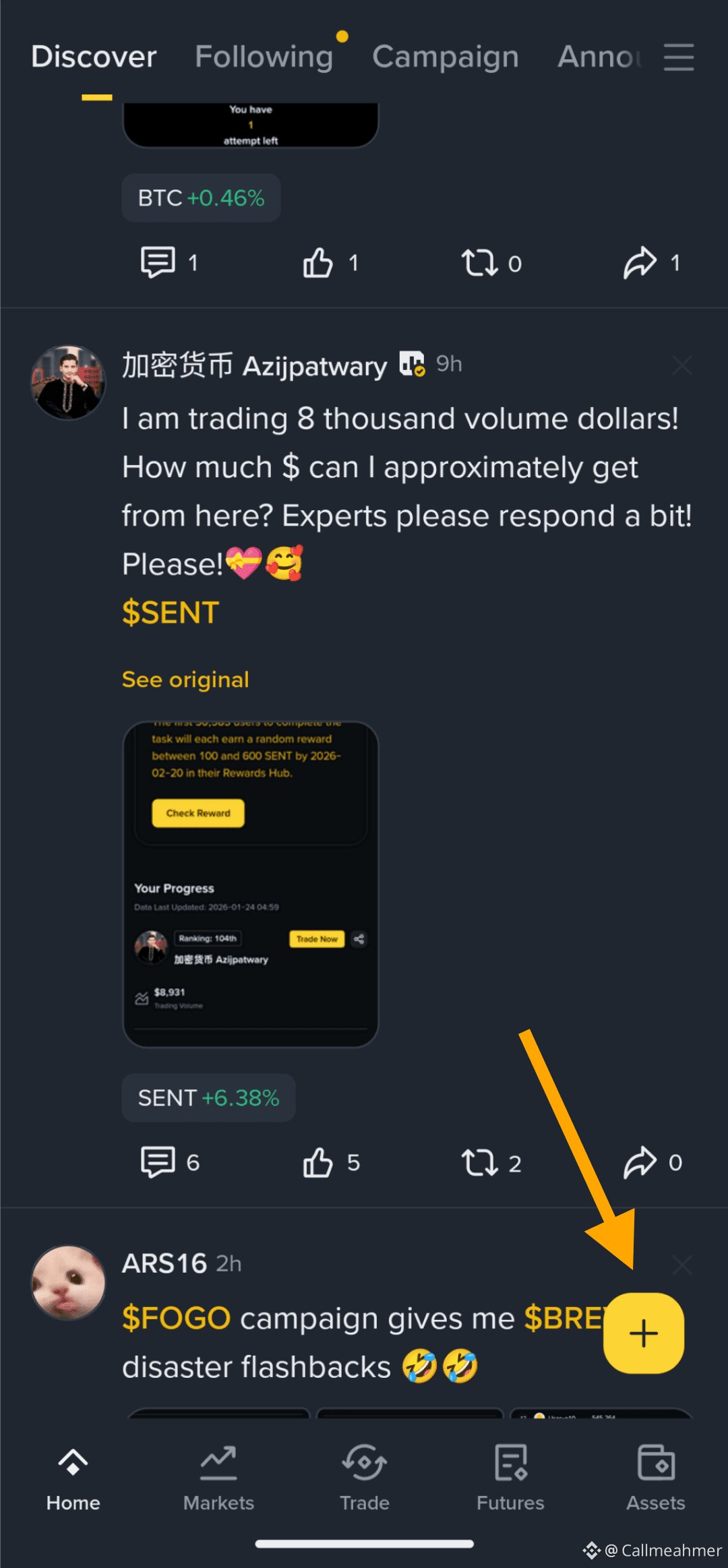 First on your discover page click on the plus โ icon or click on the arrow