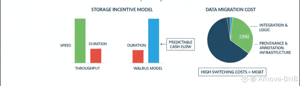 Artificial intelligence is where the tension first becomes visible. The common refrain is that AI runs on data, but that’s obvious and uninteresting. The real issue is ownership. Centralized storage platforms mastered scale, but not autonomy. When I mentally sketch out AI training pipelines, one cost refuses to compress storage rent. AWS isn’t pricey because it’s sloppy it’s expensive because it controls the chokepoint. Walrus inverts that dynamic. Not through aggressive subsidies, but through incentives that pay for duration instead of throughput. That subtle shift reshapes who actually owns a model, in ways the market hasn’t fully processed.