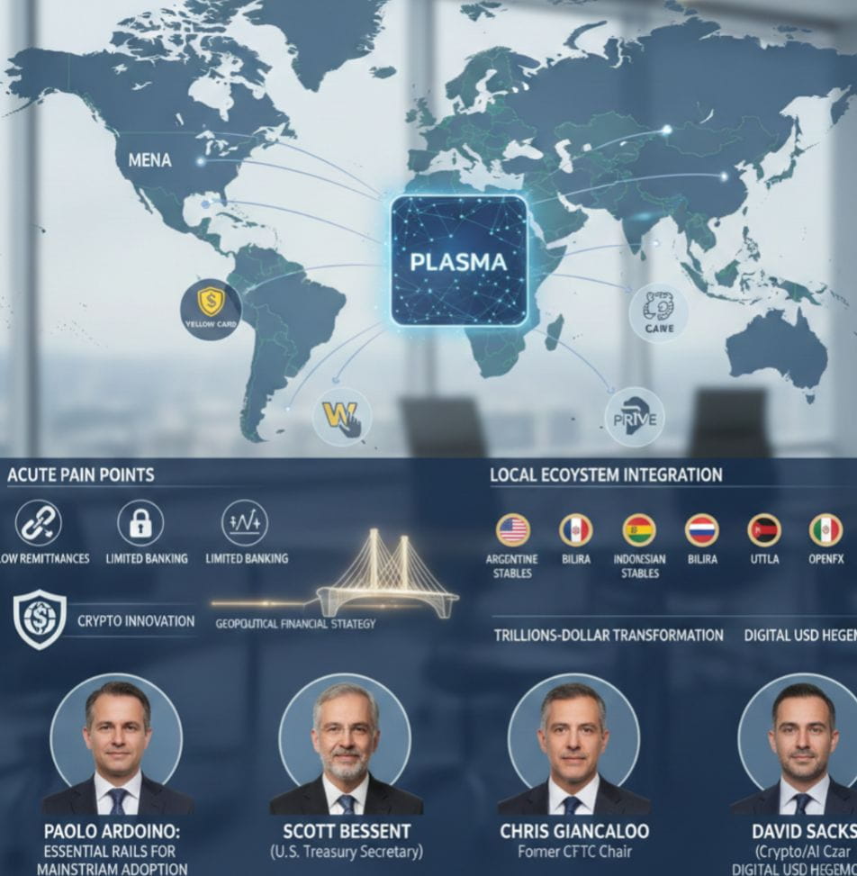 Institutional and policy gravitas bolsters its credibility. Advisors and backers include Tether CEO Paolo Ardoino (who views Plasma as essential rails for mainstream stablecoin adoption), U.S. Treasury Secretary Scott Bessent (on using stablecoins to sustain USD reserve dominance), former CFTC Chair Chris Giancarlo (envisioning a trillions-dollar transformation in money movement), and Crypto/AI Czar David Sacks (emphasizing stablecoins' role in digital USD hegemony and Treasury demand). This alignment positions Plasma as a bridge between crypto innovation and geopolitical financial strategy.