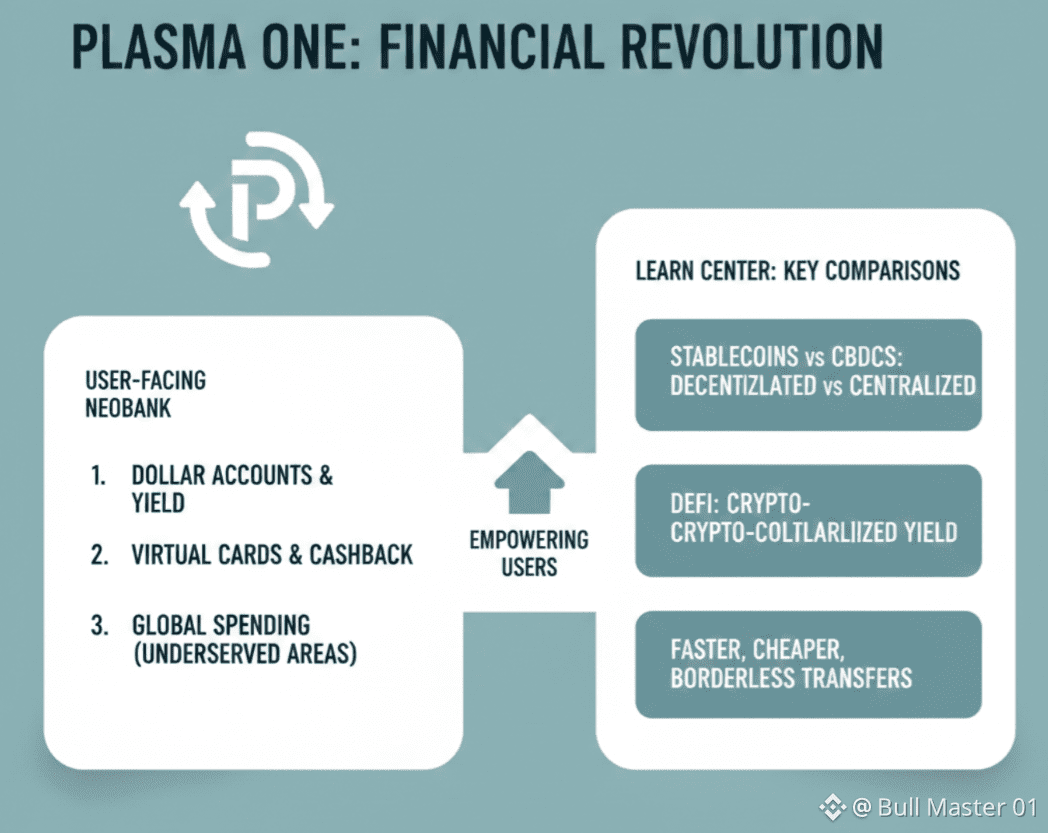 Plasma One advances the user-facing revolution: a stablecoin-centric neobank (in progressive rollout) that combines permissionless dollar-denominated accounts, yield opportunities, and practical spending via virtual cards—delivering cashback incentives and seamless global utility to everyday users in underserved areas.