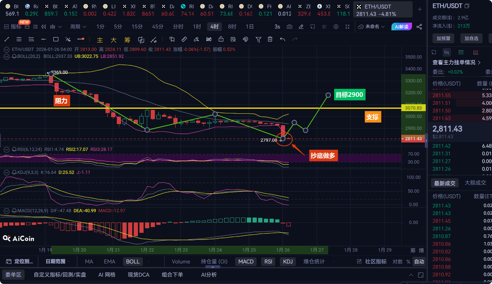 Some people may ask: 'Master, what if it continues to drop?' I clearly tell everyone that the current support level is 2790; if it breaks, I will eat my keyboard live! Moreover, from the perspective of funds, there was just a big order of 1000ETH at 2800, which is not something retail investors can play with; it is obvious that the main force is secretly accumulating shares. Do you remember that wave of ETH that dropped from 3200 to 2600 last December? At that time, the panic index also hit the bottom. I told my followers to bottom fish at 2650, and it later rose directly to 3800, with many people making enough money for a car.