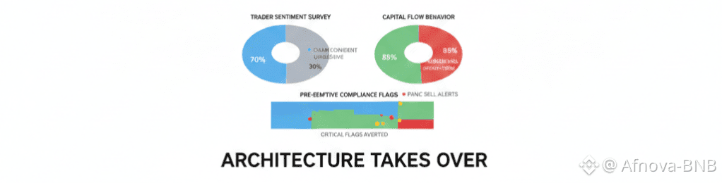 I start thinking about what that does to capital behavior. If certain transactions can be flagged before they propagate not after settlement then compliance becomes pre-emptive rather than punitive. That changes how institutions size exposure. It quietly lowers the risk premium. You don’t see that in flashy metrics; you see it in calmer liquidity, fewer emergency exits, and less violent reactions during macro stress. Traders feel that before they can articulate it.