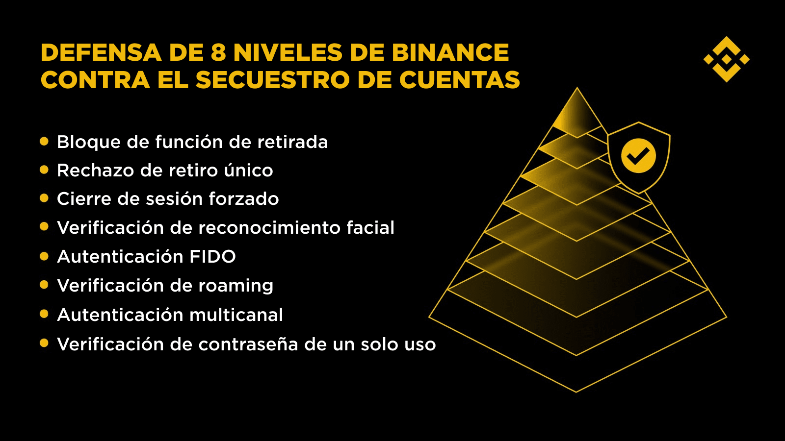 Binance utiliza una defensa de 8 niveles que refuerza progresivamente las medidas de seguridad conforme aumentan las señales de actividad inusual.