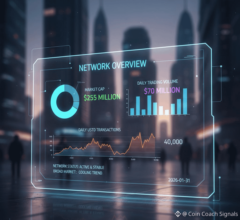 For context, the network’s market cap sits around $255 million, with daily trading volume near $70 million. These figures suggest the network is active without feeling overheated. Recent usage data shows around 40,000 USDT transactions per day. That’s lower than the early launch spikes, but it has held up reasonably well even as the broader market cooled off.