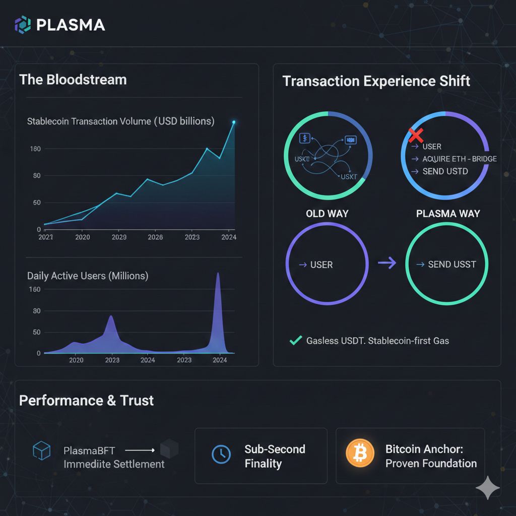 Plasma feels like a response to the present tense of crypto, not a dream about a distant future.