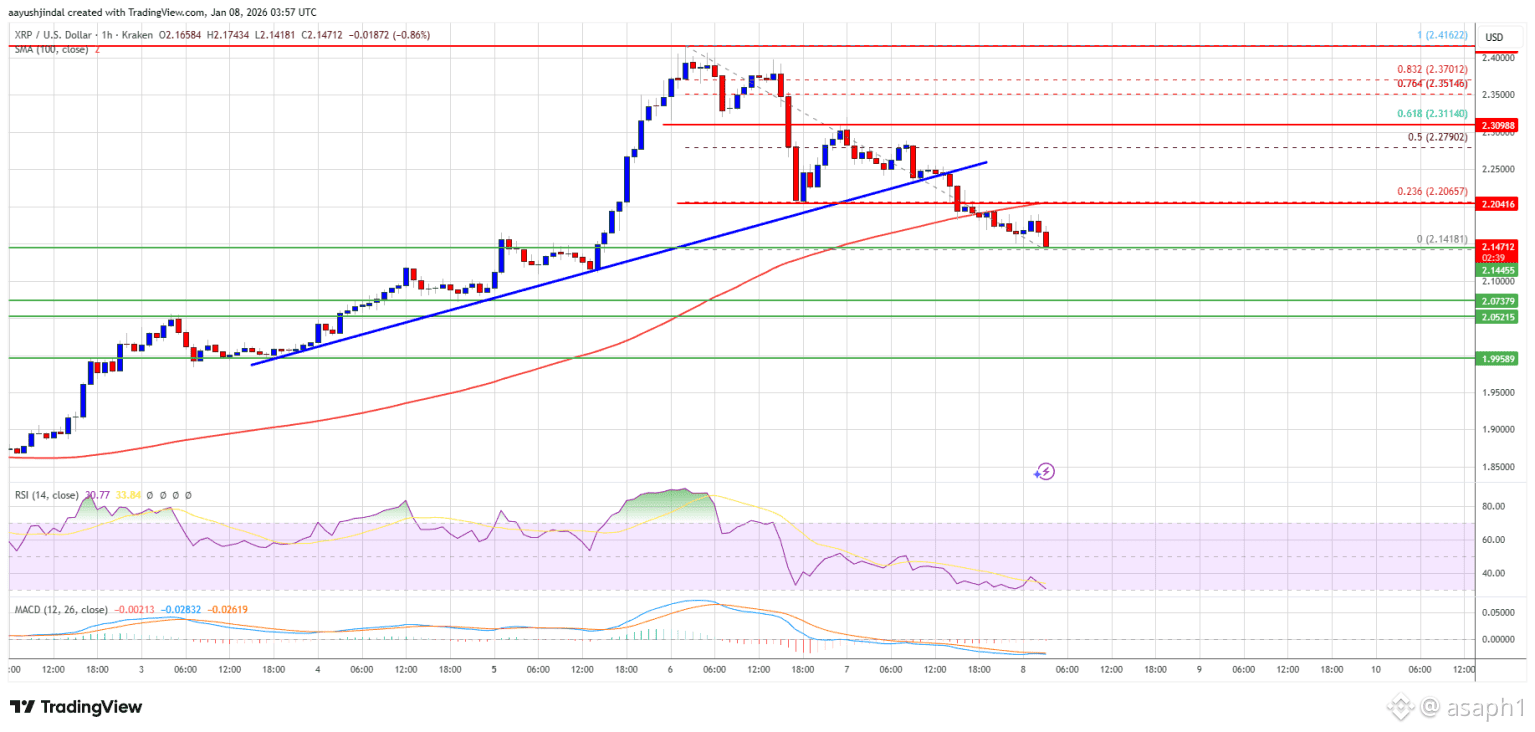 El suelo de los $2,150 es ahora mismo la línea de fuego que separa a XRP de un desplome mayor, y la tensión se siente en cada vela del gráfico. 📉 Mira, familia, la cosa está así: después de intentar romper la barrera de los $2,32, nuestra moneda se quedó sin gasolina y el mercado le pasó factura. No pudo aguantar el ritmo y ahora estamos viendo cómo lucha por no hundirse más allá de los $2,14.