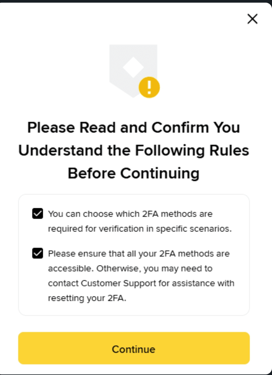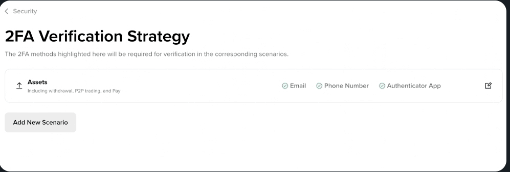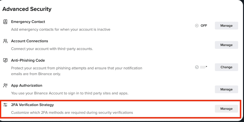 La Estrategia de Verificación 2FA te permite decidir qué verificaciones de seguridad son necesarias para diferentes acciones en tu cuenta de Binance.