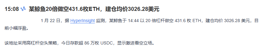 Esta tarde se ha detectado un movimiento clave: un gran jugador ha hecho un corto de 431.6 ETH con un apalancamiento de 20 veces, con un precio de entrada promedio de 3026 dólares, y ha depositado más de 86,000 USDC como margen. Esto no es una operación de corto plazo ordinaria, sino una típica apuesta direccional con alto apalancamiento, que refleja una expectativa clara de que grandes capitales anticipan un espacio de caída en el futuro.