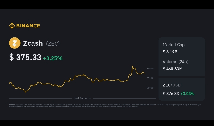 Precio de ZEC: ~$370–$380 rango (fluctuante)