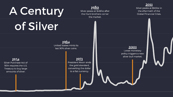 A partir de enero de 2026, la plata al contado ha SUPERADO oficialmente los $100 por onza por primera vez en la historia (alcanzando recientemente ~$100.29+), aumentando más del 38% solo este mes después de enormes ganancias en 2025. Es un estallido histórico impulsado por la locura de refugio seguro, la demanda industrial (solar, vehículos eléctricos, tecnología), el caos geopolítico y los inversores que están deshaciéndose de moneda fiduciaria por activos duros. Algunos analistas están pronosticando entre $150 y $200+ para fin de año si el rally refleja superciclos pasados!