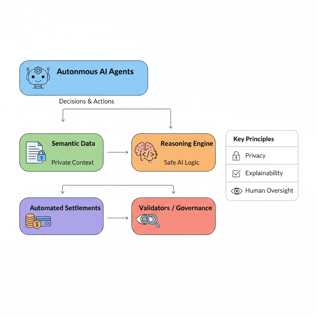 La acción autónoma agrava este riesgo. Una vez que los sistemas de razonamiento están conectados a capas de ejecución, el análisis ya no es teórico. Las decisiones se traducen directamente en pagos, transferencias de activos, ejecución de reglas o reequilibrio económico. En tales entornos, los modos de falla no son abstractos. Una inferencia errónea puede desencadenar consecuencias en cascada a través de sistemas interconectados. Las violaciones de privacidad ya no se limitan a la exposición de datos; se convierten en vectores de manipulación económica, coerción o sesgo sistémico.