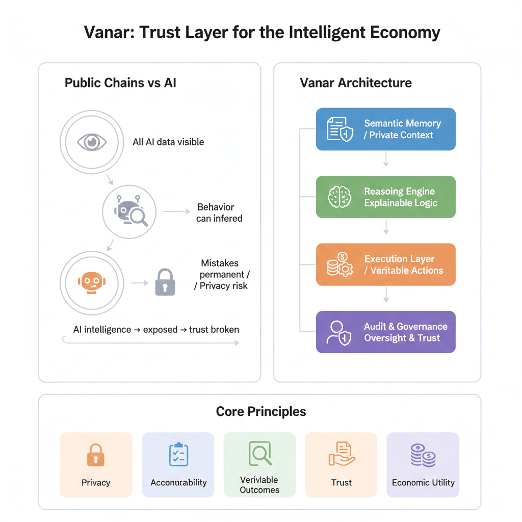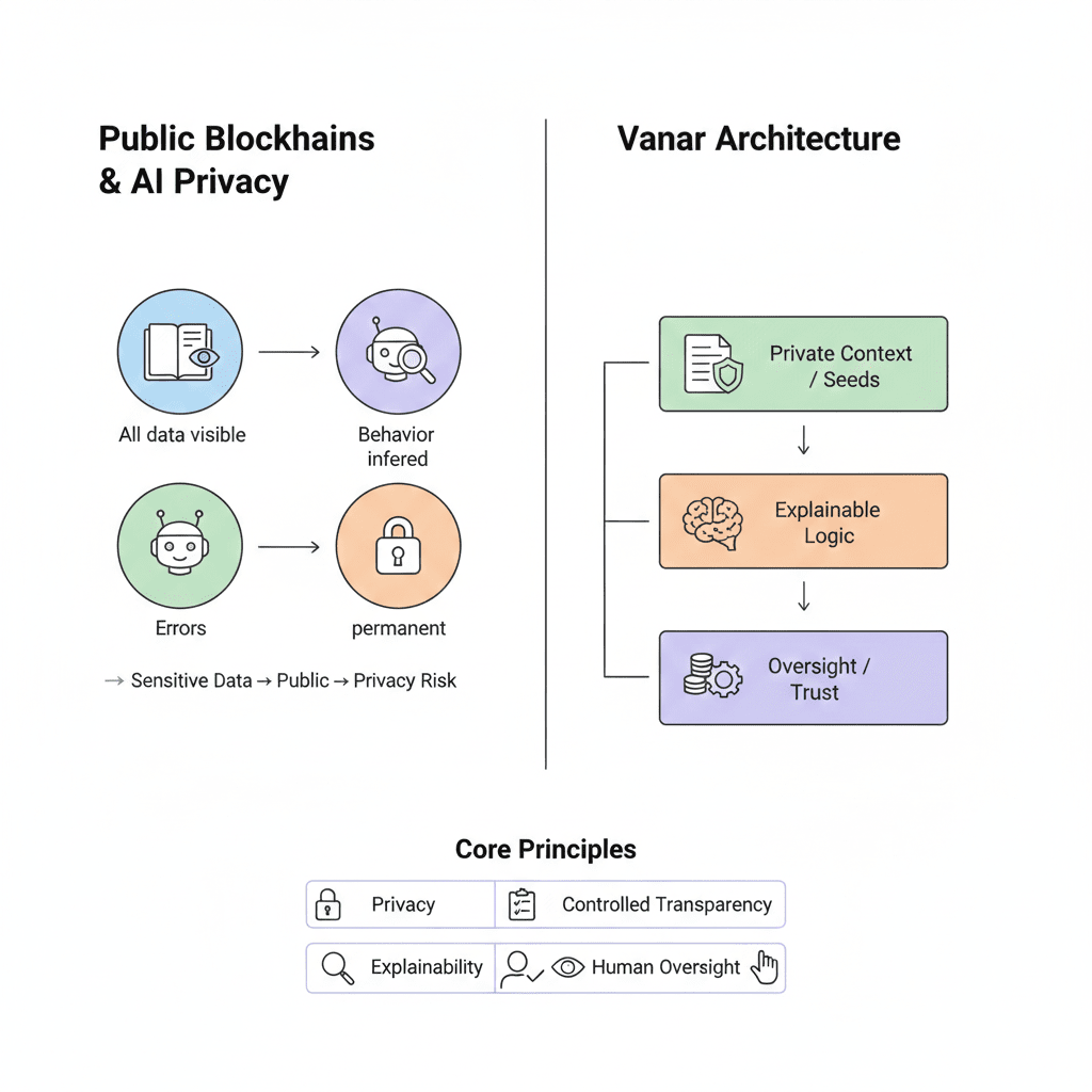 Vanar aborda el problema desde la dirección opuesta. En lugar de adaptar la IA a los libros de contabilidad públicos, adapta la infraestructura a los requisitos de la inteligencia.