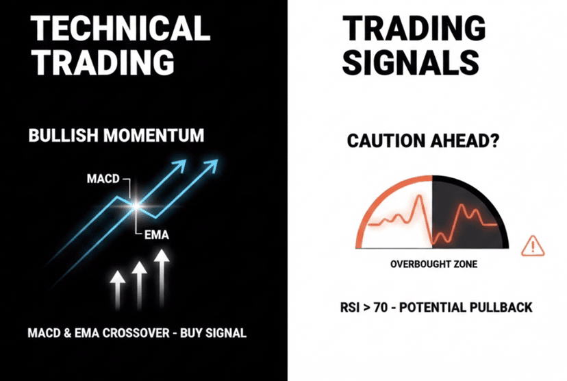 Los mercados tienen un lenguaje propio, y en este momento, la estructura técnica está hablando claramente pero no imprudentemente. El impulso es fuerte, la convicción es visible y las señales de tendencia se están alineando de una manera que exige atención. Al mismo tiempo, la precaución susurra en segundo plano, recordando a los participantes experimentados que la fuerza y la sostenibilidad no siempre son la misma cosa.