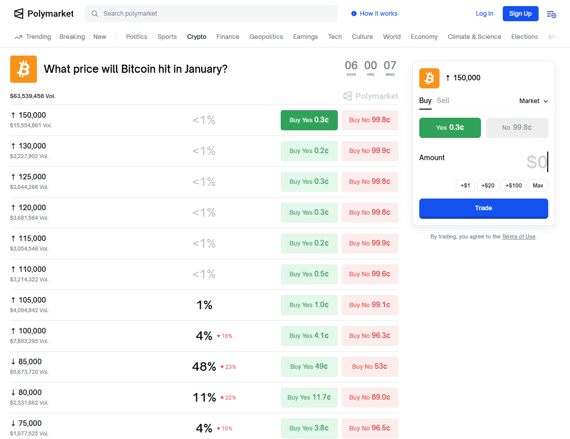 Los mercados de predicción se han convertido en un panel de control en la sombra sobre cómo los comerciantes están traduciendo los titulares en probabilidades, y la utilidad no es que siempre tengan razón, sino que cuantifican la distribución de expectativas en tiempo real de una manera que las redes sociales no pueden. En la página de mercados de criptomonedas de Polymarket, el contrato que hacía referencia a bitcoin cayendo a $85,000 en enero mostró que la probabilidad aumentaba a aproximadamente el 49% durante el aumento de incertidumbre macro, que es efectivamente el mercado diciendo: “una caída más profunda ya no es un escenario marginal; está cerca de ser un lanzamiento de moneda.” El valor analítico es que esta probabilidad puede moverse más rápido que las notas de investigación tradicionales o los cierres diarios, y tiende a reaccionar inmediatamente a los mismos catalizadores que impulsan los clusters de liquidación—titulares de escalada geopolítica, reversiones de aranceles, picos de volatilidad—por lo que a menudo se comporta como un sismógrafo de sentimientos de alta frecuencia. En un régimen donde el oro está rompiendo hitos y la plata está corriendo a través de niveles psicológicos, la señal de los mercados de predicción no es simplemente pesimismo sobre BTC; es un recordatorio de que el camino de bitcoin aún está gobernado por la microestructura del mercado—apalancamiento, liquidez y posicionamiento—al menos tanto como por la narrativa de reserva de valor a largo plazo, que es por qué la historia del “oro digital” puede ser direccionalmente cierta a lo largo de ciclos, pero decepciona precisamente cuando la cinta se convierte en un evento de desapalancamiento forzado.