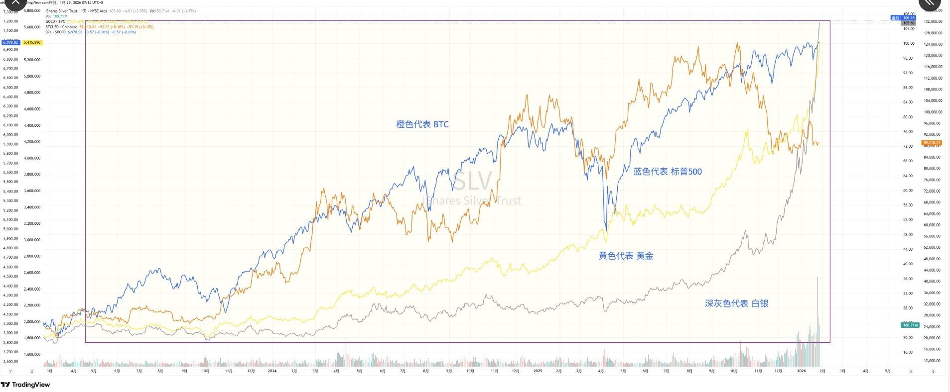 El oro (XAUUSD) se disparó drásticamente, subiendo un 10% en una sola semana, superando los 5.500 $. Esto no se trata solo de "pausas en los tipos de interés"; es una manifestación concentrada de la "prima de incertidumbre". La flexibilización de las restricciones a los tipos de interés reales, sumada a la creciente competencia política y económica mundial, ha convertido a este activo refugio, considerado el más antiguo, en el mayor ganador.