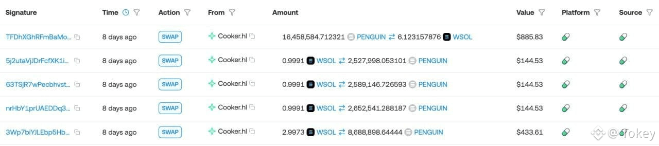 الدخول الذكي: قام المتداول بشراء 16.5 مليون وحدة من عملة $PENGUIN مقابل 6 $SOL فقط (ما يعادل 867$).