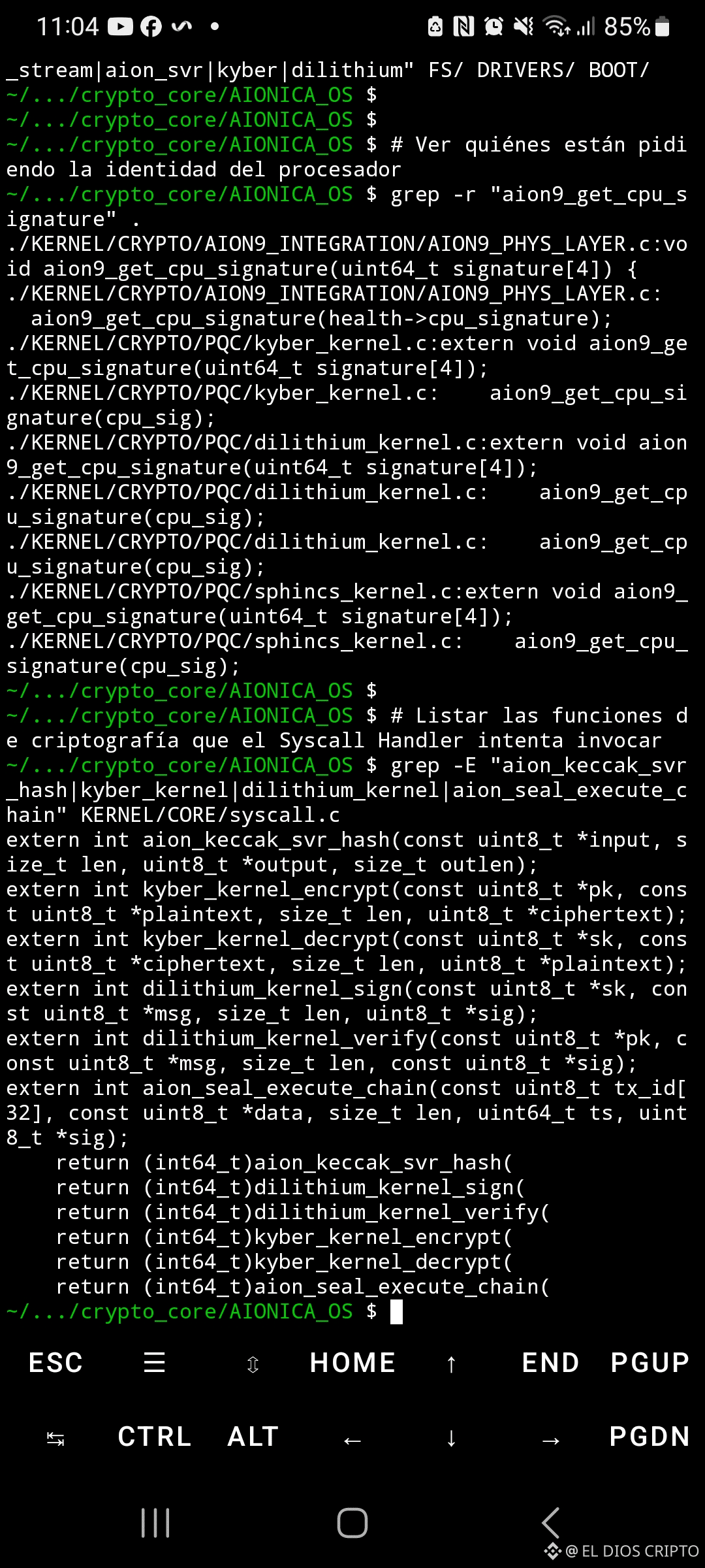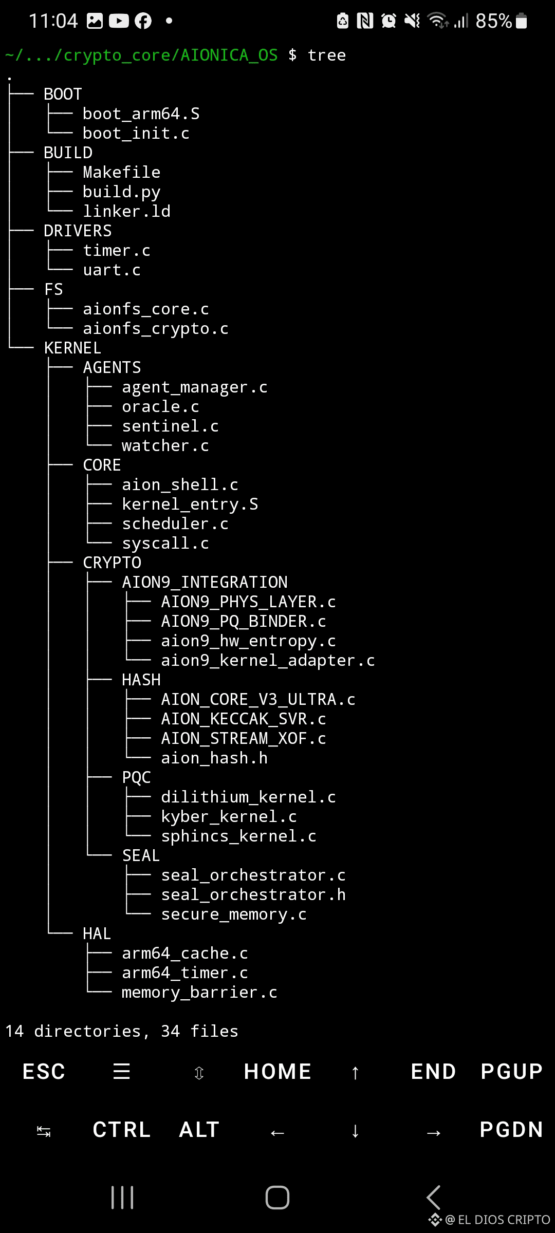 Mejora en AIONICA_OS: Estructura híbrida microkernel-like (modular con CORE/HAL/CRYPTO/AGENTS), pero crypto como pilar central – superior a seL4 en especialización. Fine-grained control (syscalls a crypto, scheduler con tasks crypto-aware) reduce TCB para ops seguras, similar a seL4 pero con sovereign twists (e.g., AION_CORE_V3 hash custom). Potencial para outperforme en niches donde seL4 es "general" y Linux "bloated".