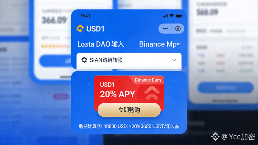 第二步:USD1转入Binance Earn——20%年化收益落袋