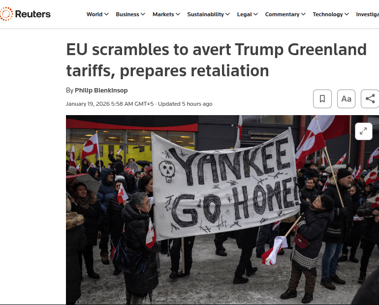 El colapso siguió al anuncio del presidente Trump de que EE. UU. impondría un arancel del 10% a los bienes de los principales países de la UE a partir del 1 de febrero. También amenazó con aumentar el arancel al 25% a partir del 1 de junio si no se alcanza un acuerdo sobre la compra de Groenlandia.