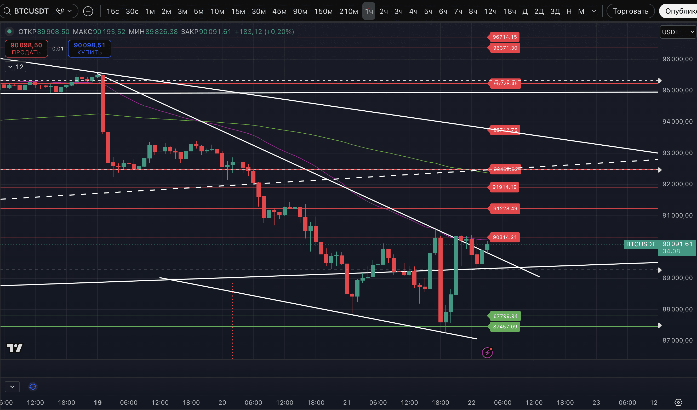 - EMA 50 del marco temporal horario (ahora alrededor de 90 241$),