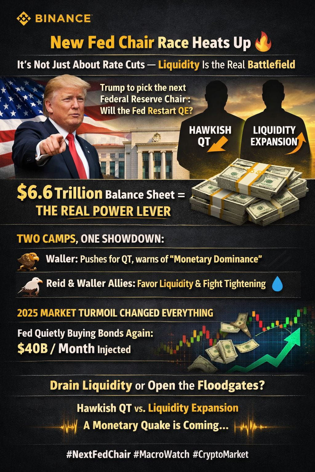 📊 Political Signals Are Clear While Waller’s odds are rising, the White House is pushing for a “rate-cut + liquidity-injection” aligned candidate.