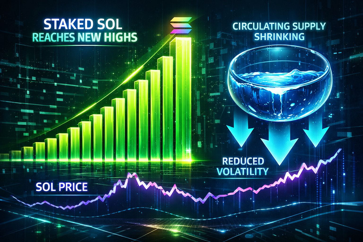 With ~70 % of SOL staked, a significant portion of the supply is effectively removed from active trading inventories, tightening near‑term available liquidity for price action. This dynamic supply contraction can reduce selling pressure and potentially limit downside volatility if broader market sentiment stabilizes