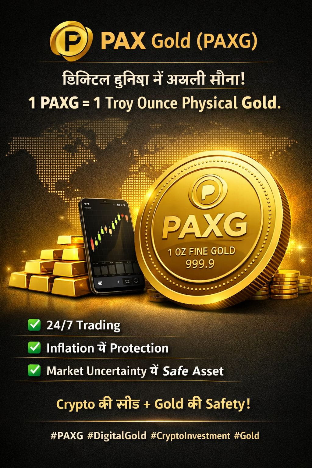 📌 PAXG (PAX Gold) एक gold-backed cryptocurrency है — हर टोकन 1 Troy ounce असली सोने से backed। इसका मतलब है कि PAXG की कीमत मुख्य रूप से Gold की international price को follow करती है.