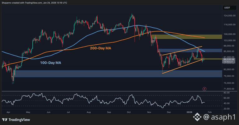 ¡La batalla por los $90,000 está que arde y el Rey Bitcoin acaba de recibir un golpe que nos tiene a todos con el ojo cuadrado! 🥊 BTC se nos cayó un 7% esta semana y la pregunta que todos nos hacemos en el grupo de WhatsApp es: ¿Se acabó la fiesta o solo estamos barriendo la casa antes de que lleguen los invitados de honor?