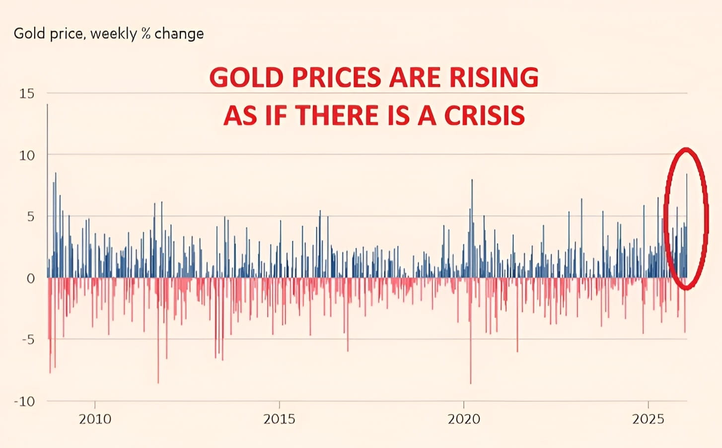 🔸 Con este rendimiento, se confirma como el mejor crecimiento semanal en oro desde la Crisis Financiera Global de 2008. Esto indica que el sentimiento actual de aversión al riesgo está en un nivel comparable a los períodos más oscuros de la historia financiera.