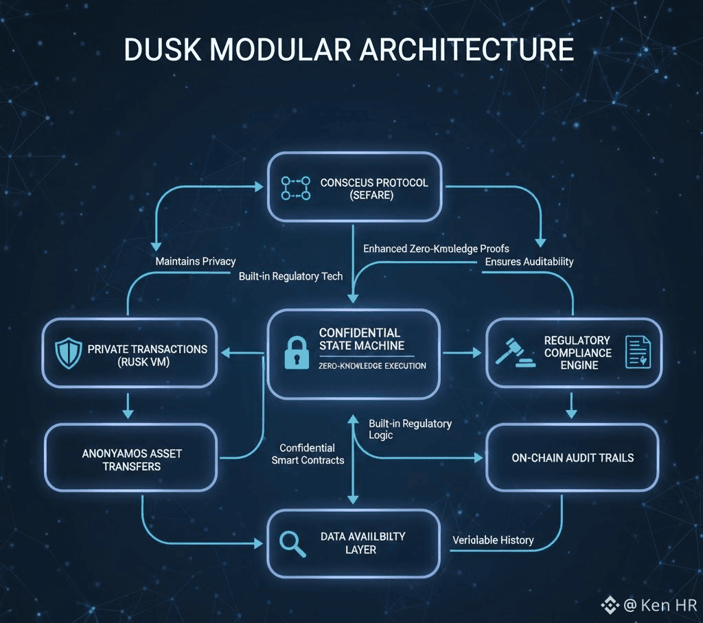 In conclusion, Dusk’s design philosophy exemplifies the next evolution of blockchain infrastructure, where privacy and transparency coexist as complementary pillars. Its modular architecture, regulatory compliance mechanisms, and support for tokenized real-world assets establish a robust foundation for secure, scalable, and transparent financial applications. As enterprises, institutions, and individual users increasingly demand secure yet accountable blockchain solutions, Dusk stands out as a trusted, privacy-first, and audit-ready platform that bridges innovation with responsibility.
