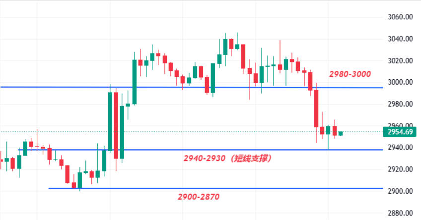 Puntos clave: la resistencia superior se encuentra en el rango de 2980-3000 dólares, si se rompe, se puede ver 3030-3050 dólares y cerca de 3100 dólares; el soporte inferior se centra en el rango de 2940-2950 dólares, si se pierde puede caer a 2920-2880 dólares.