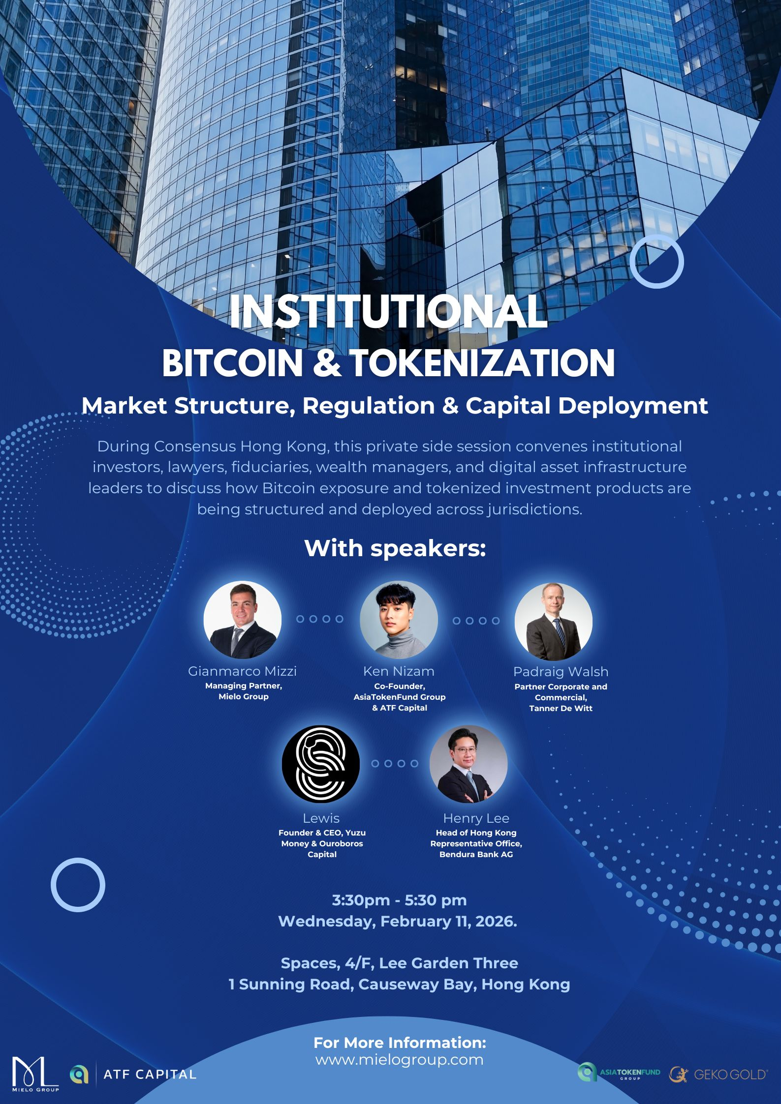A medida que el interés institucional en los activos digitales continúa madurando, la conversación ha cambiado decisivamente de la especulación hacia la estructura, el cumplimiento y el despliegue de capital en el mundo real. En este contexto, se llevará a cabo una sesión privada titulada “Bitcoin Institucional & Tokenización: Estructura del Mercado, Regulación & Despliegue de Capital” durante Consensus Hong Kong, organizada por Mielo Group, una firma de asesoría estratégica especializada en activos digitales institucionales, estructuración transfronteriza y estrategia regulatoria.