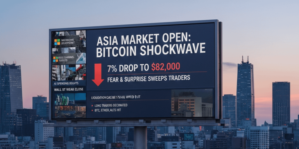 Bitcoin es el nombre con el que quiero comenzar porque toda esta historia comienza ahí. He estado observando el mercado de cerca y cuando Asia abrió, Bitcoin cayó repentinamente de manera drástica y rápida. Se movió hacia abajo alrededor de un siete por ciento y alcanzó cerca de ochenta y dos mil dólares. En mi búsqueda y seguimiento diario, empiezo a saber que este no era un movimiento normal y calmado. Se sentía como miedo mezclado con sorpresa. Muchos comerciantes quedaron atrapados de un lado y el mercado se dio la vuelta rápidamente. A pesar de que la caída parecía aterradora, he visto momentos así antes donde mercados fuertes limpian manos débiles antes de mostrar su verdadero poder.