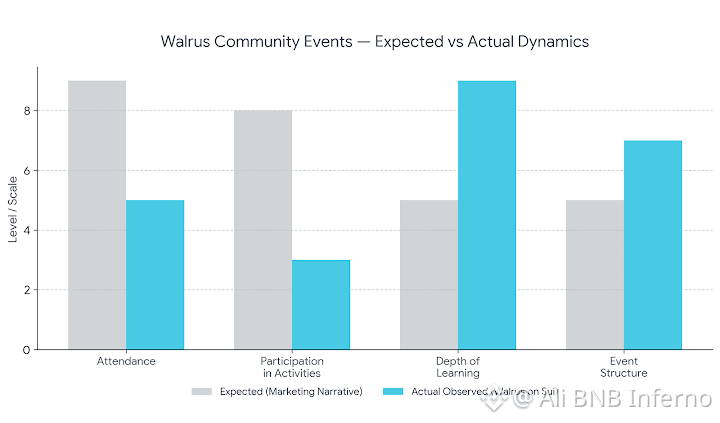 I noticed a small statistic that stuck with me. Less than 30% of attendees actively participated in a live coding exercise, but those who did engaged for longer periods and produced meaningful results. The pattern suggested that Walrus designs community events with quality interactions in mind rather than headline metrics. It felt like a conscious choice to prioritize retention of understanding over rapid scaling of numbers.