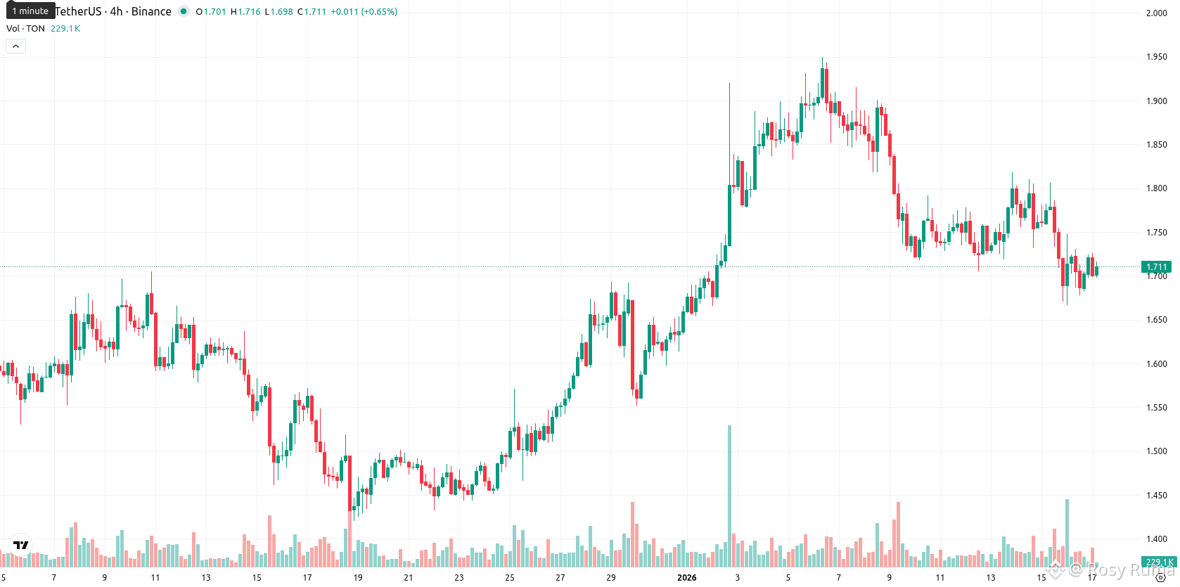 Toncoin ($TON ) is trading near $1.71, posting a 2.02% weekly decline as selling pressure continues to outweigh bullish momentum. The pullback remains orderly, confined within a relatively tight $0.154 weekly range, suggesting controlled downside rather than panic-driven selling.